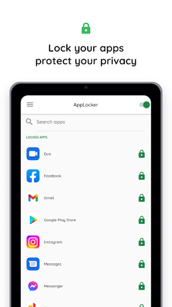 AppLocker é um AppLock Android. Usando o sensor de impressão digital ou a senha padrão, ele pode proteger aplicativos e arquivos. Já foi usado por mais de 30 milhões de pessoas. Com o AppLocker , você nunca mais terá que se preocupar com um amigo que pega seu celular emprestado para olhar a galeria! Você nunca mais pode se preocupar com um amigo que lê mensagens privadas no seu telefone! Você nunca mais pode se preocupar com os pais verificando seus aplicativos de mídia social! Você nunca pode se preocupar com seus filhos alterando as configurações, enviando mensagens aleatórias, pagando com cartões de crédito novamente! Você deve ter um telefone seguro para desfrutar de uma vida feliz. Você deve ter um telefone seguro para desfrutar de uma vida feliz.